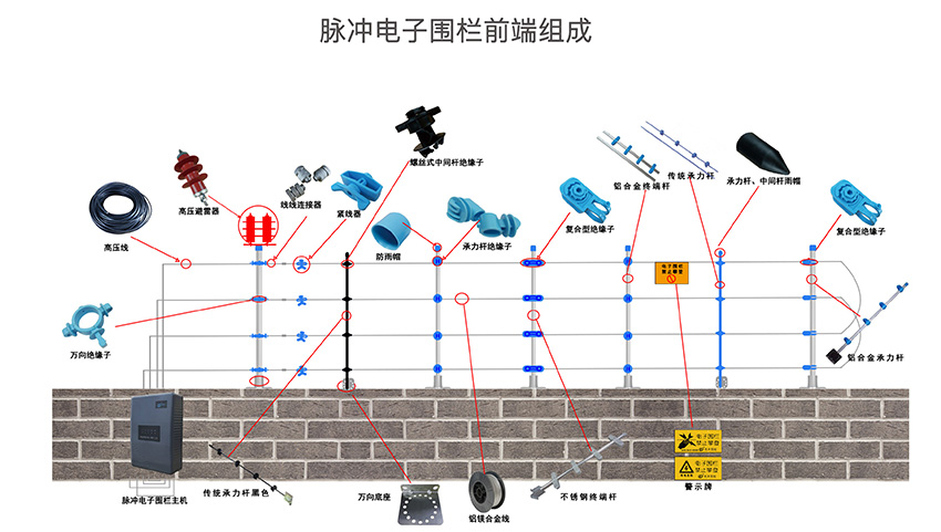 現在來說下張力電子圍欄,前面也說瞭(le)張力圍欄和脈沖圍欄最大的區别就是張力圍欄不具備有高壓脈沖電擊功能,報警和阻擋同樣具備瞭(le)。張力圍欄的報警方式是當前端的圍欄的拉力值發生瞭(le)改變就會産生報警信号。由於(yú)張力圍欄是一種物理性的報警方式,所以張力圍欄的每個的防區控制長度就相對較短一般在40米以内爲一個防區。由於(yú)防區控制長度較短,在同周長的項目上整體的造價成本相比脈沖圍欄要高一些。