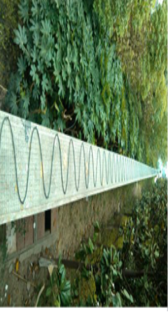 在草坪下埋設振動傳感光纜時,如果該區域已經鋪上草坪,應先将需要鋪設振動傳感光纜的周界區域的草坪用草坪切割機鏟起。周界區域寬度應不小於1.2米 ,如須提高警戒級别,可增加周界區域的寬度。草坪下面的土地應是土質較爲硬而緊密的泥土,如果是水分較多,軟而松散的土質會吸收振動 ,造成設備性能下降。在土層的表面沿周界方向迂回平行鋪設多道振動傳感光纜 ,光纜間隔距離爲25cm,即1.2米寬的區域應平行鋪設5道振動傳感光纜 ,如圖。振動傳感光纜應平直、緊密地附著在土層表面,可採用Φ5的鋼絲折彎成如圖所示的線卡子,每隔50cm用線卡子将振動傳感光纜緊壓在土層上,但應注意避免因壓力過大造成光纜變形。固定好光纜後,将草坪平鋪在上面,鋪設厚度5—10cm爲适,鋪設太深靈敏度太低,不利於報警信息識别。應保證草坪接合處緊密,以避免振動傳感光纜外露。