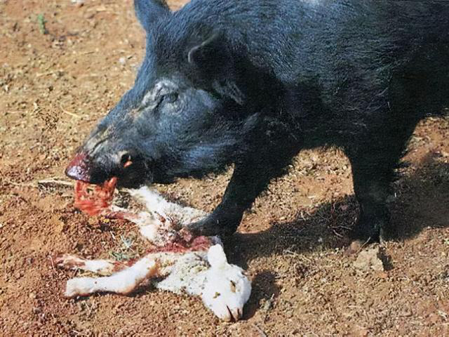 被野豬啃食的小羊羔